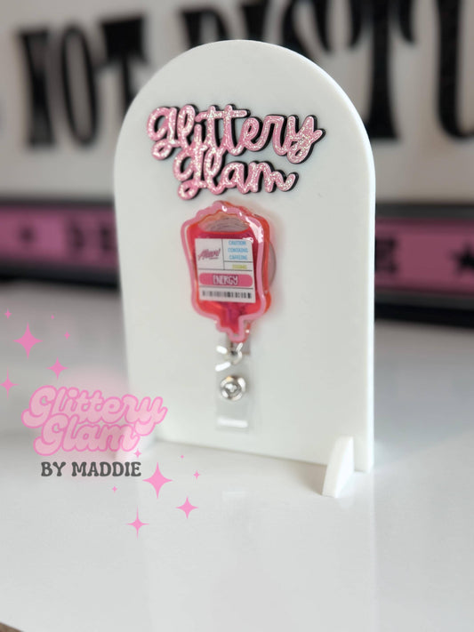Alani Nu IV Bag Badge Reel | Cute Nurse Badge Holder | Fun Retractable ID Clip | Shaker Badge Reel- Gift for Energy Drink Lovers