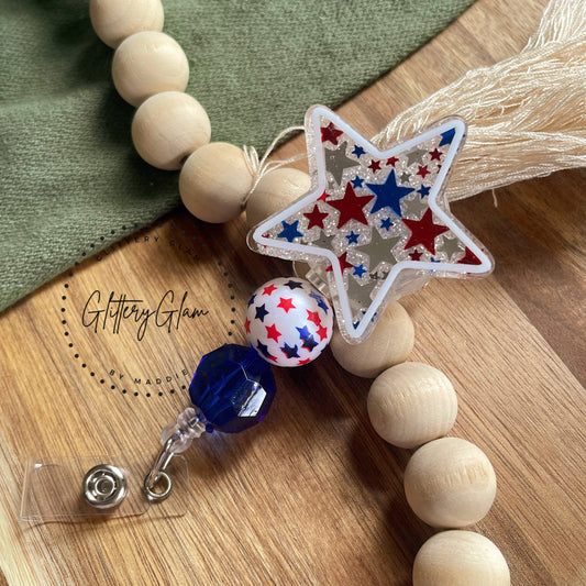 Patriotic Star Beaded Badge Reel