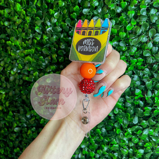 Personalized Teacher Badge Reel: Glittered Acrylic ID Holder