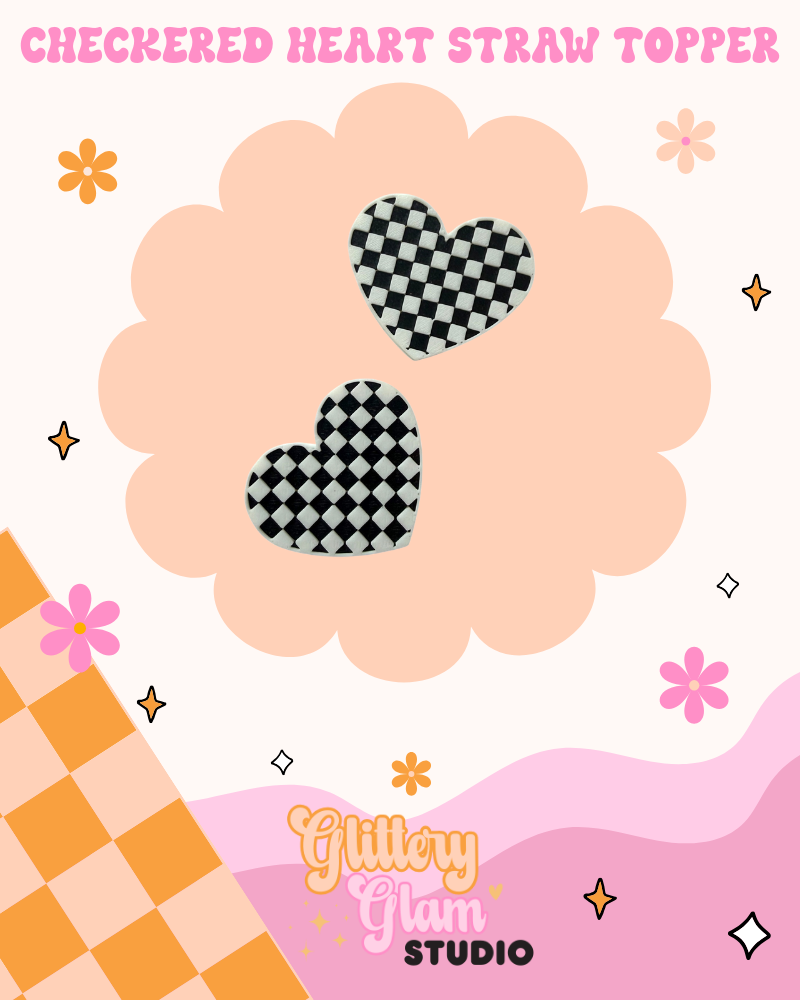 Add a pop of retro love to your favorite drink with this adorable Checkered Heart Straw Topper 🏁💕