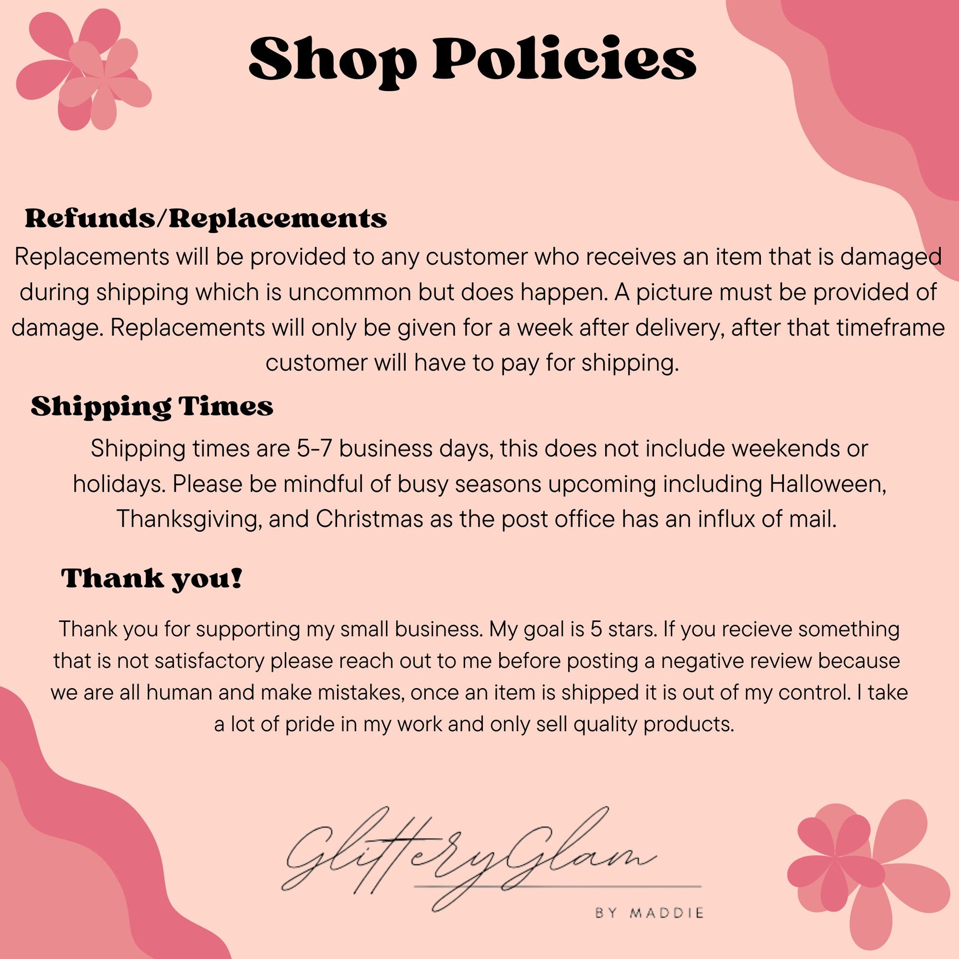 *Please be AWARE that due to the variations in computer monitors products or colors may appear SLIGHTLY different once received than how they look online.