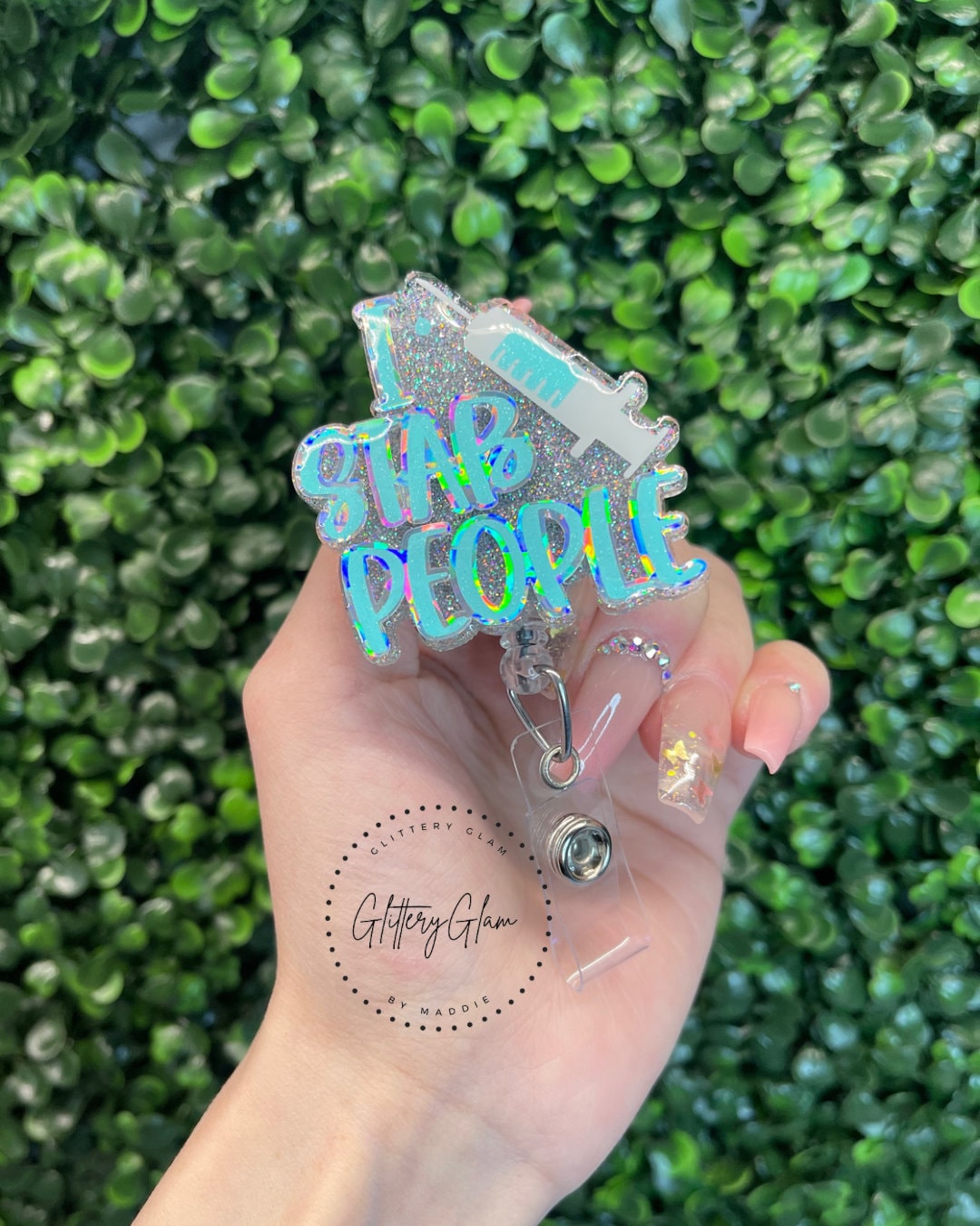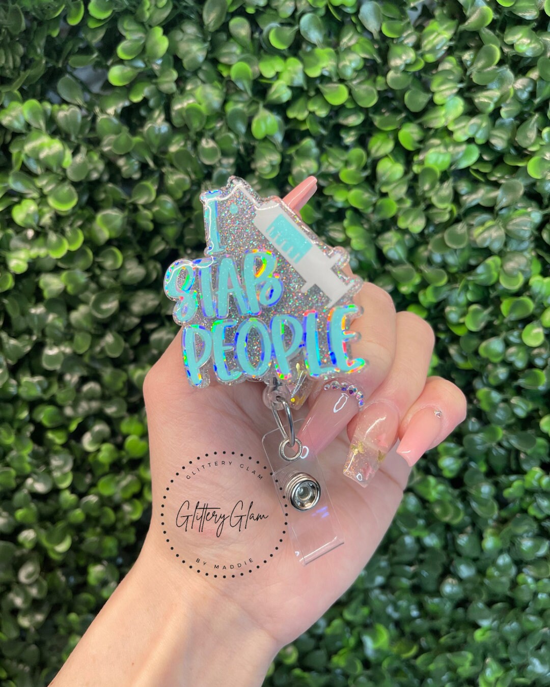 Phlebotomist Badge Reel, Phlebotomy Badge Reel, I Stab People, Funny, Iridescent