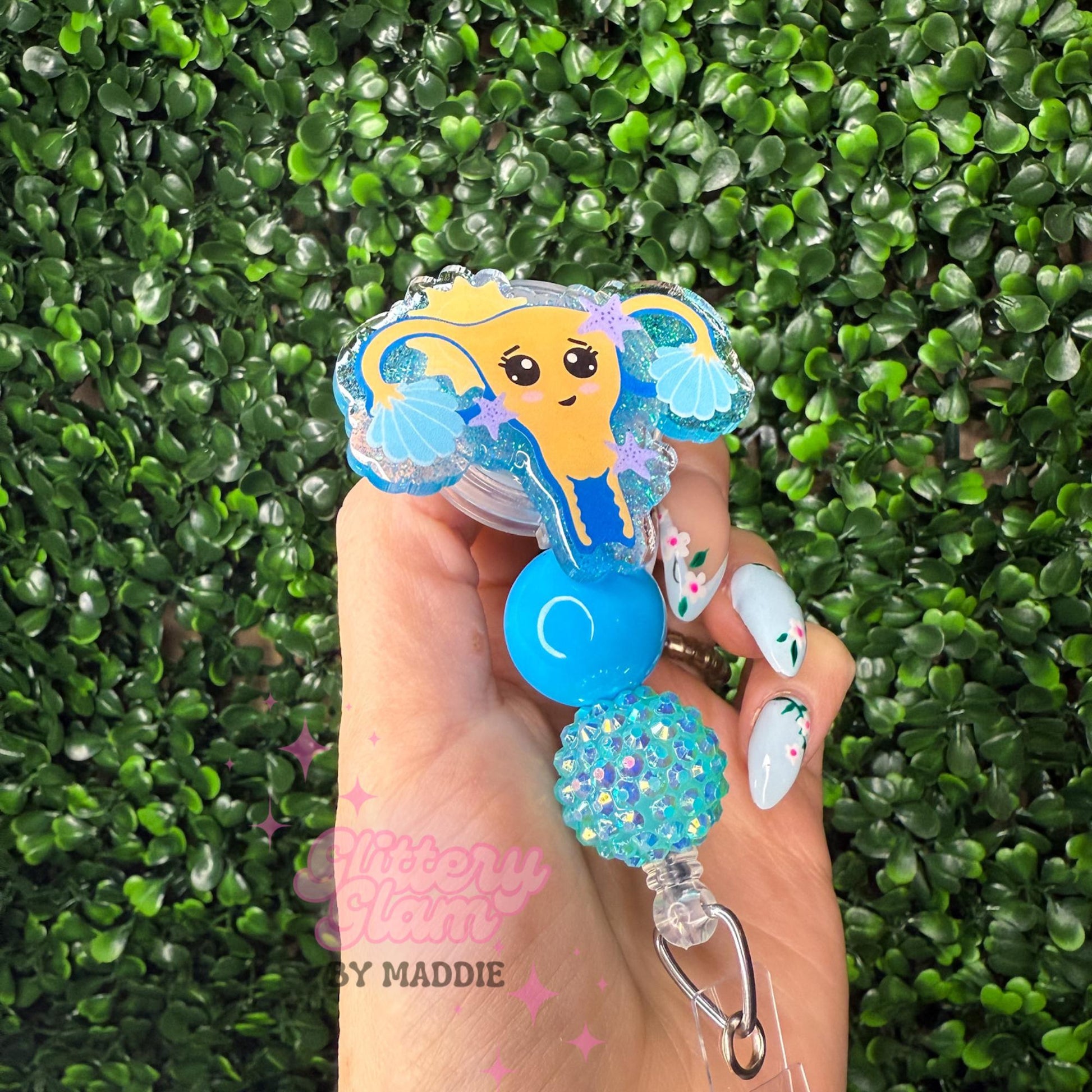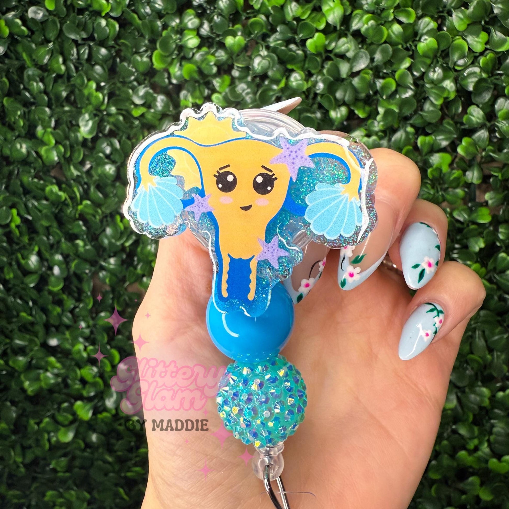 This summer-themed uterus badge reel is the perfect mix of fun + functional for OB nurses, L&D staff, and women’s health queens who love bringing personality to their workday.